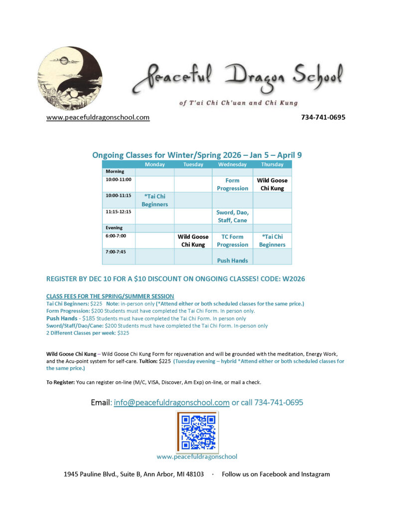 NOTE: ALL TAI CHI CLASSES ARE IN-PERSON ONLY.